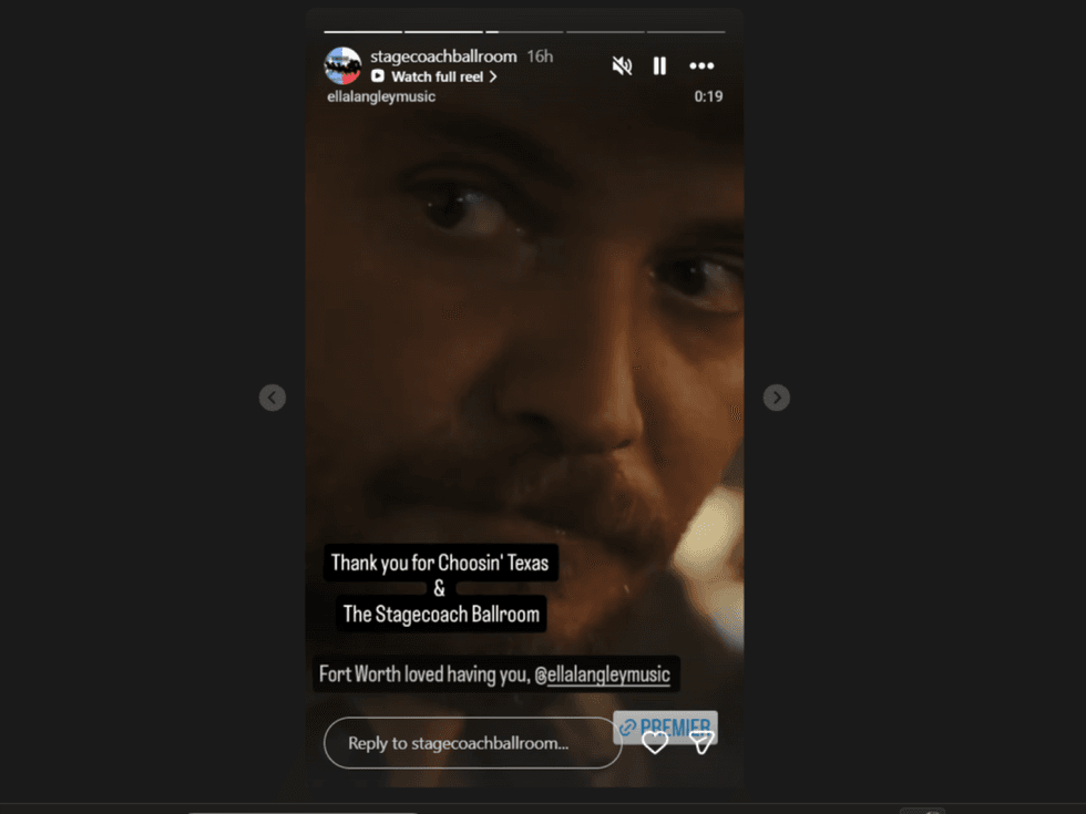 "Thank you for Choosin' Texas & The Stagecoach Ballroom. Fort Worth loved having you, @ellalangleymusic," the venue posted in an Instagram story on April 1, along with a screen shot of the IHeart Radio article.